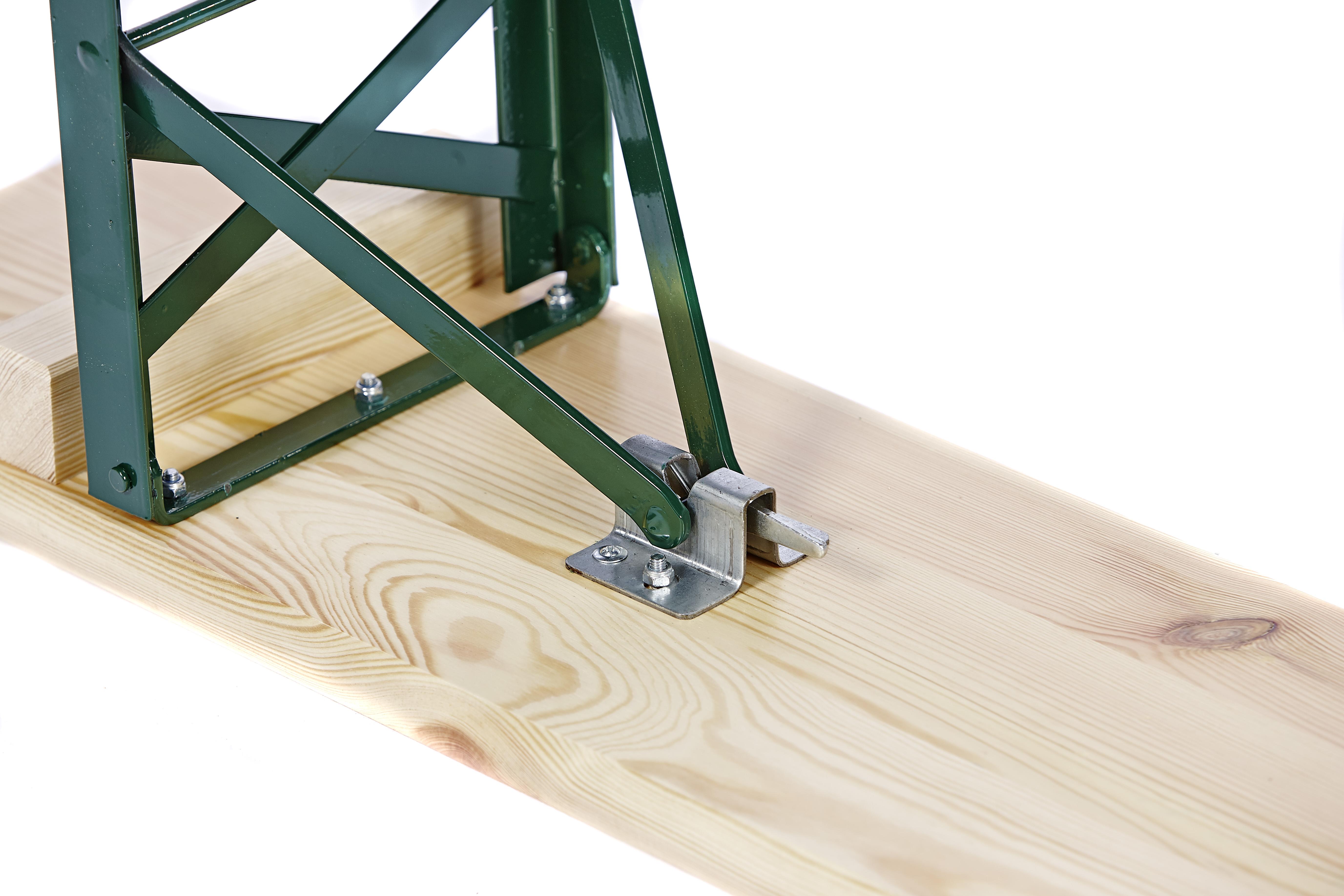 Feiern wie auf dem Oktoberfest – Die Festzeltgarnitur in Brauereiqualität beweist Stehvermögen, auch wenn es hoch hergeht. Die Garnitur ist verstärkt und für höchste Ansprüche konzipiert. Langlebigkeit und eine top Verarbeitung stehen an erster Stelle. Massives Holz, ein Winkelstahluntergestell und die 3-Fach Verschraubung sorgen für Beständigkeit und Zuverlässigkeit.Die größere Tischvariante bietet mit einer Breite von 70 cm ausreichend Platz. Selbstverständlich ist das Set, bestehend aus zwei Bänken und einem Tisch, klappbar und platzsparend lagerbar. Zum Schutz der Garnituren bei Lagerung und Transport, werden Festzeltgarnituren in Brauereiqualität standardmäßig mit einer dritten Stapelleiste ausgestattet.
