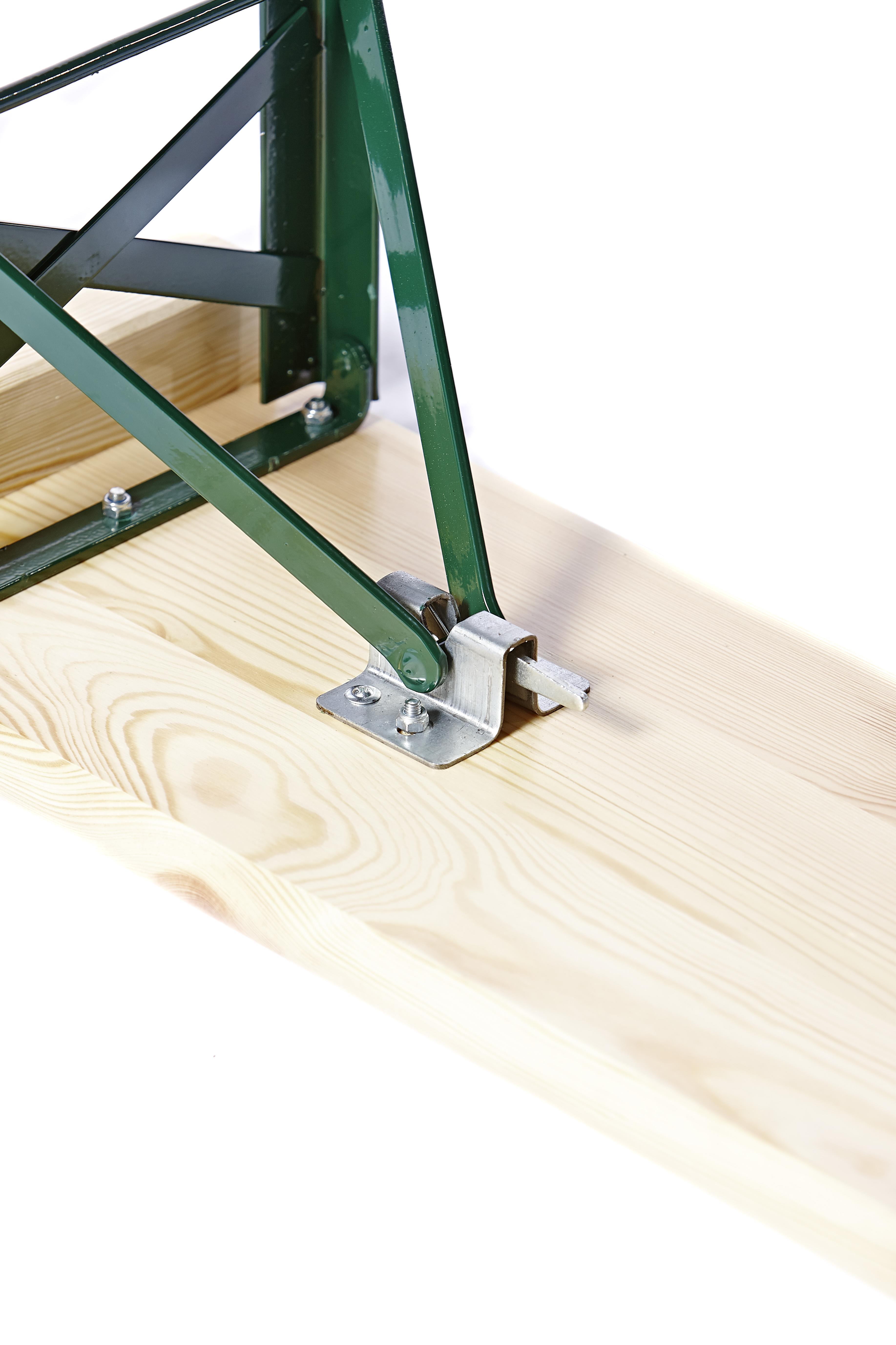 Ob für den heimischen Garten, die Gastronomie oder die Veranstaltungsbranche - Die Festzeltgarnitur in Brauereiqualität gehört zu unseren Bestsellern und zeichnet sich vor allem durch eine langlebige hochwertige Verarbeitung aus. Aus masssivem Holz und einem stabilen Winkelstahluntergestell gefertigt, hält die Garnitur auch ausgelassenen Feiern stand.Das Set aus einem Tisch und zwei Bänken ist zudem klappbar und kann platzsparend verstaut werden.