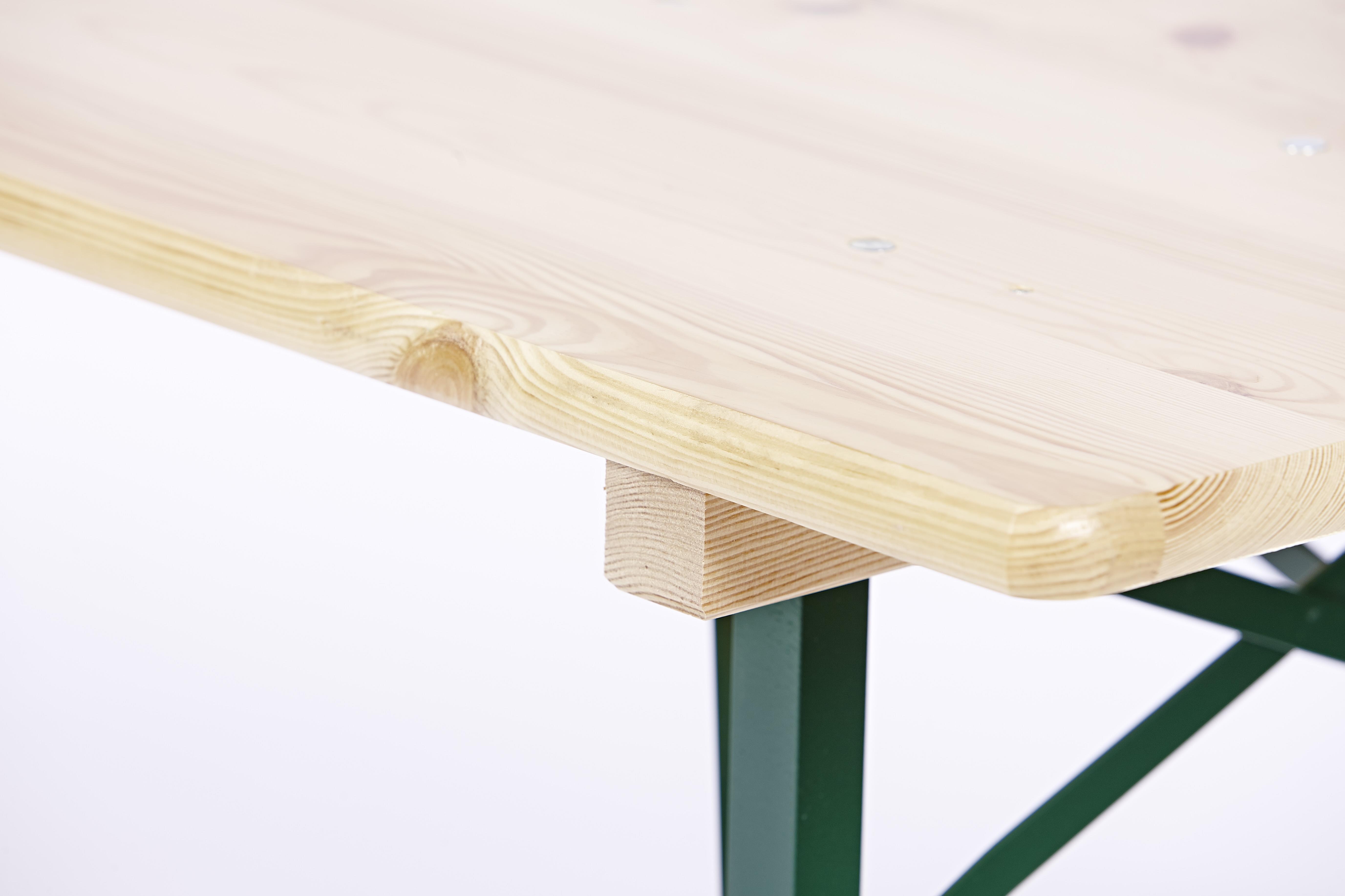 Die Festzeltgarnitur in Brauereiqualität ist für höchste Ansprüche konzipiert. Massives Holz und stabiles Winkelstahluntergestell sorgen für Langlebigkeit und Standfestigkeit.Selbstverständlich ist das Set aus einem Tisch und zwei Bänken klappbar und kann platzsparend verstaut werden.