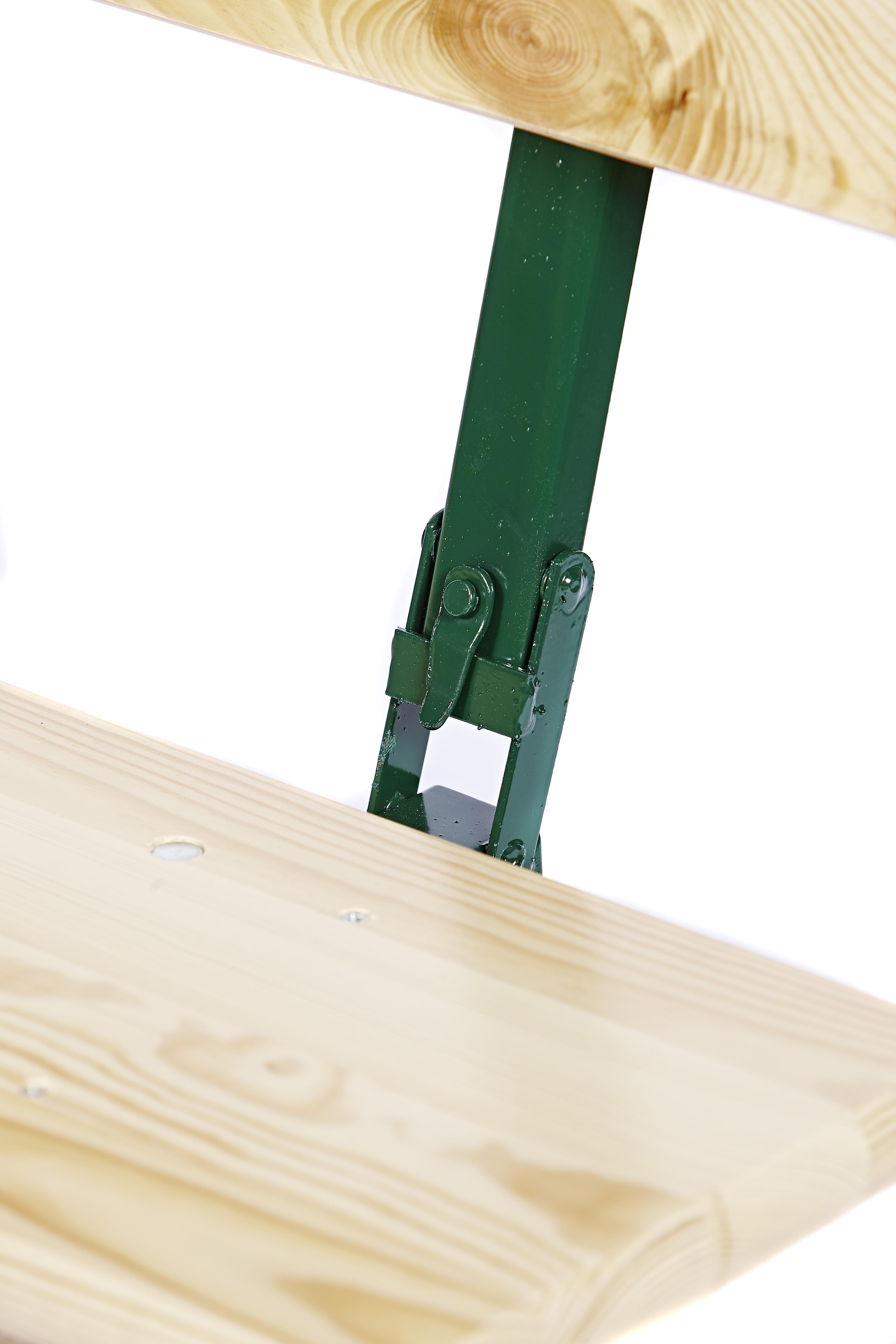 Entspannt zurücklehnen und bequem sitzen, auch über einen längeren Zeitraum. Die Bierzeltgarnitur mit Rückenlehne bietet mehr Komfort auf der Gartenparty und bringt dennoch alle praktischen Eigenschaften einer Festzeltgarnitur mit. Die Lehne ist ebenso klappbar wie das Gestell, daher lässt sich die Garnitur, wie die herkömmliche Ausführung ohne Lehne, einfach und platzsparend verstauen.Die bewährte Fachmarktqualität der Garnitur sorgt für einen festen Stand und hohe Widerstandsfähigkeit. Das Set besteht aus 2 Bänken mit Lehne und einem 70 cm breiten Tisch, der ausreichend Platz bietet.