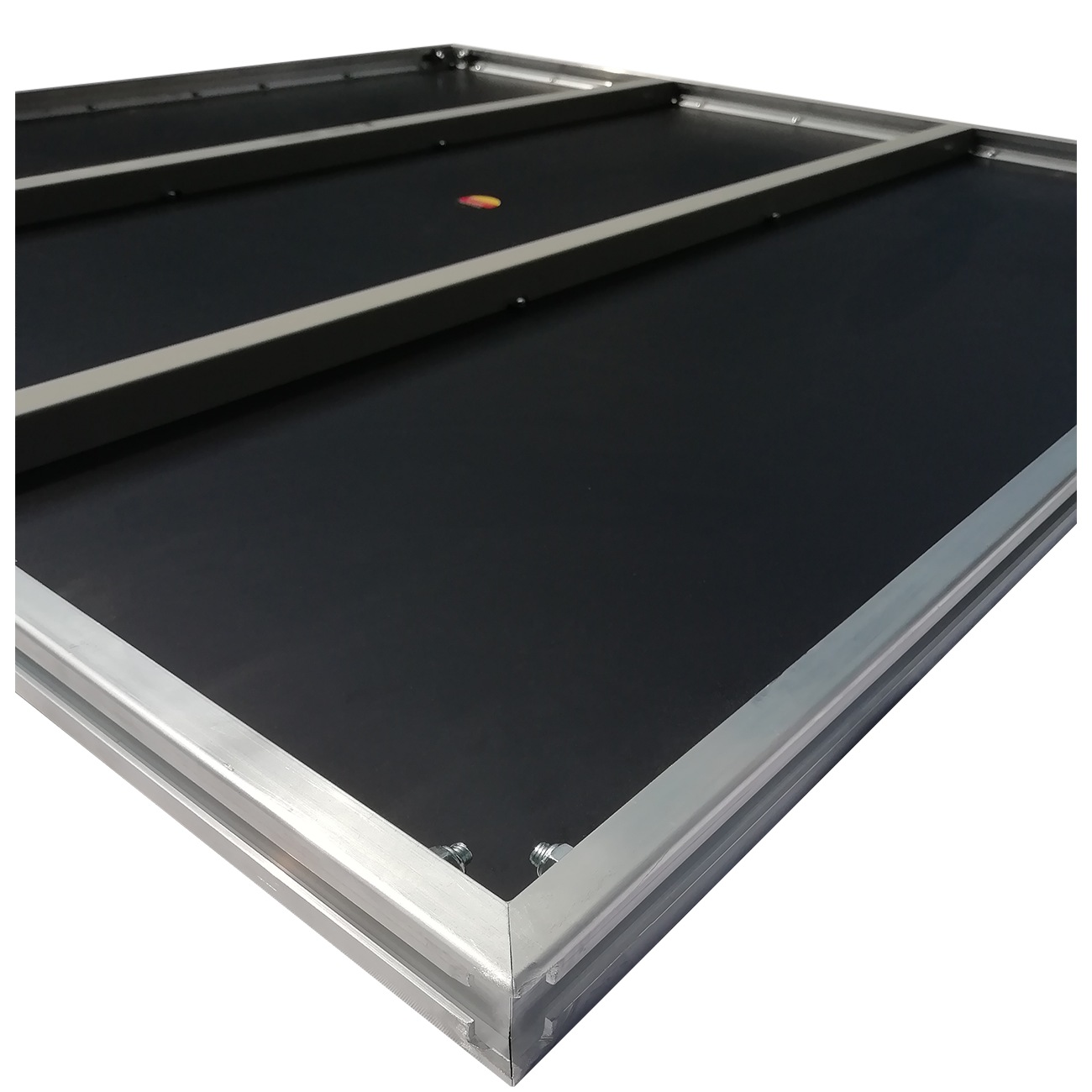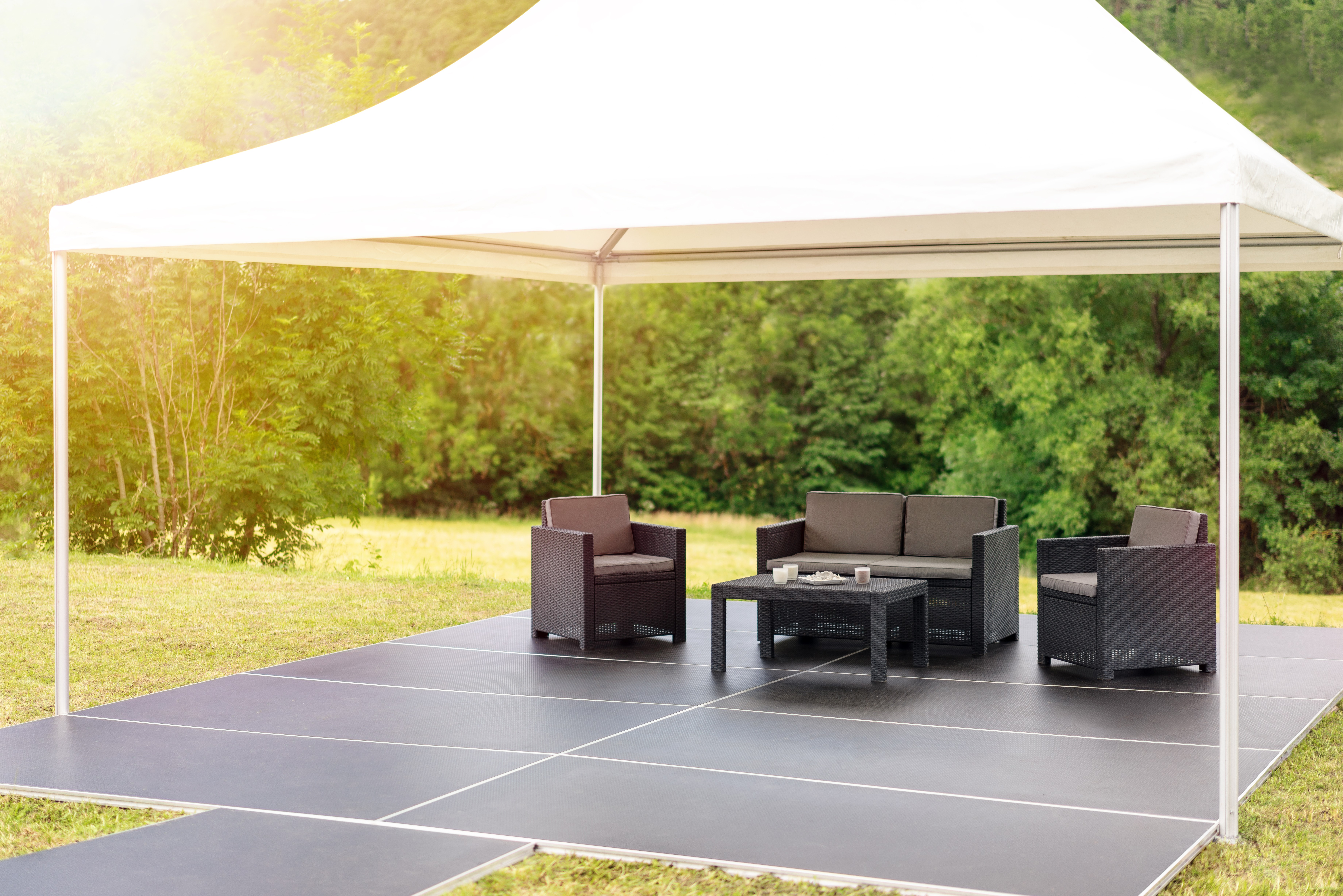 Der mobile Eventboden überzeugt durch seine stabile Konstruktion und ist Vielseitig nutzbar.Der Aluminiumrahmen verfügt über eine integrierte Montagenut, die eine einfache Befestigung von Systemzubehör ermöglicht.