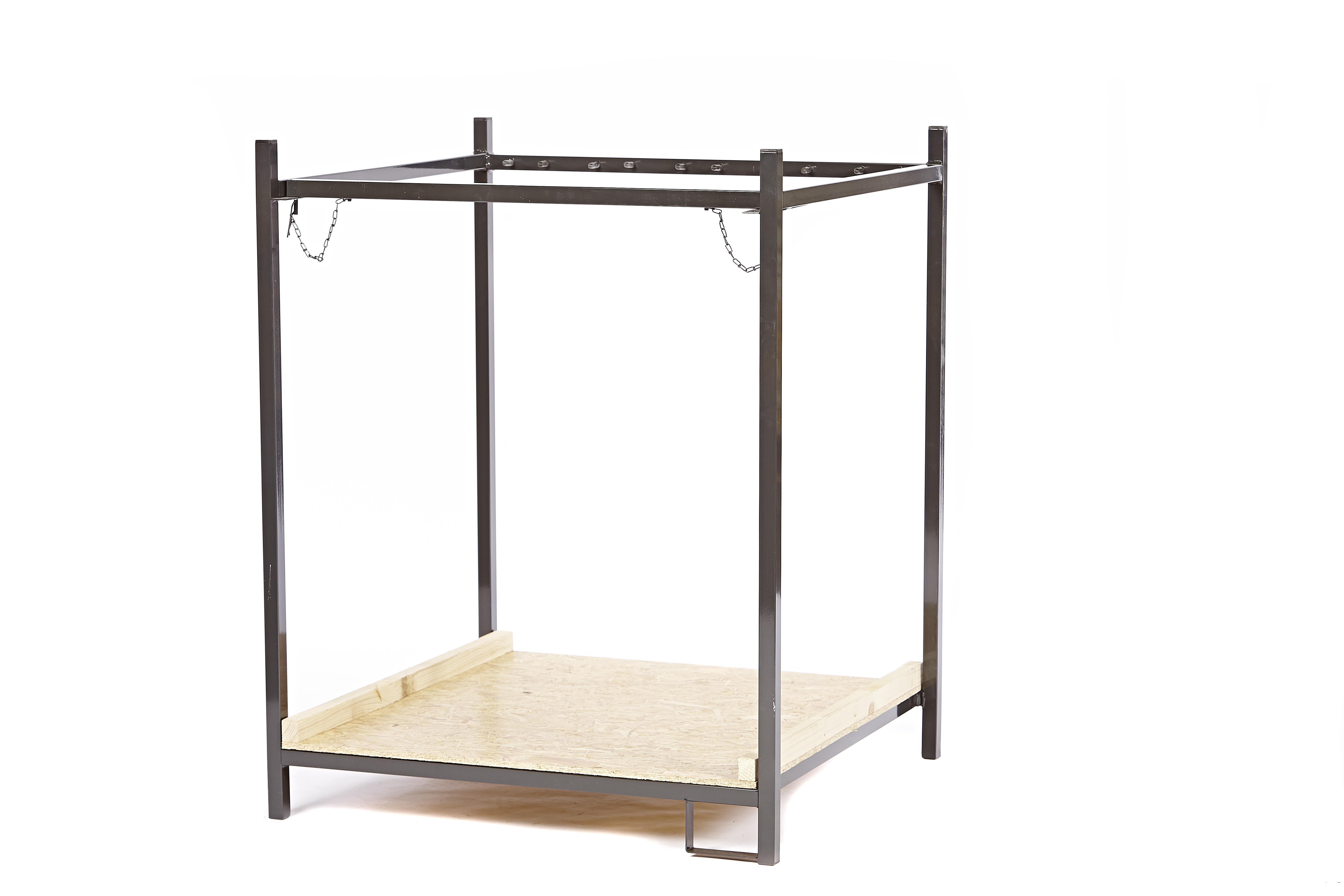 Material: Boden OSB-Platte, pulverbeschichtetes Stahlgestell